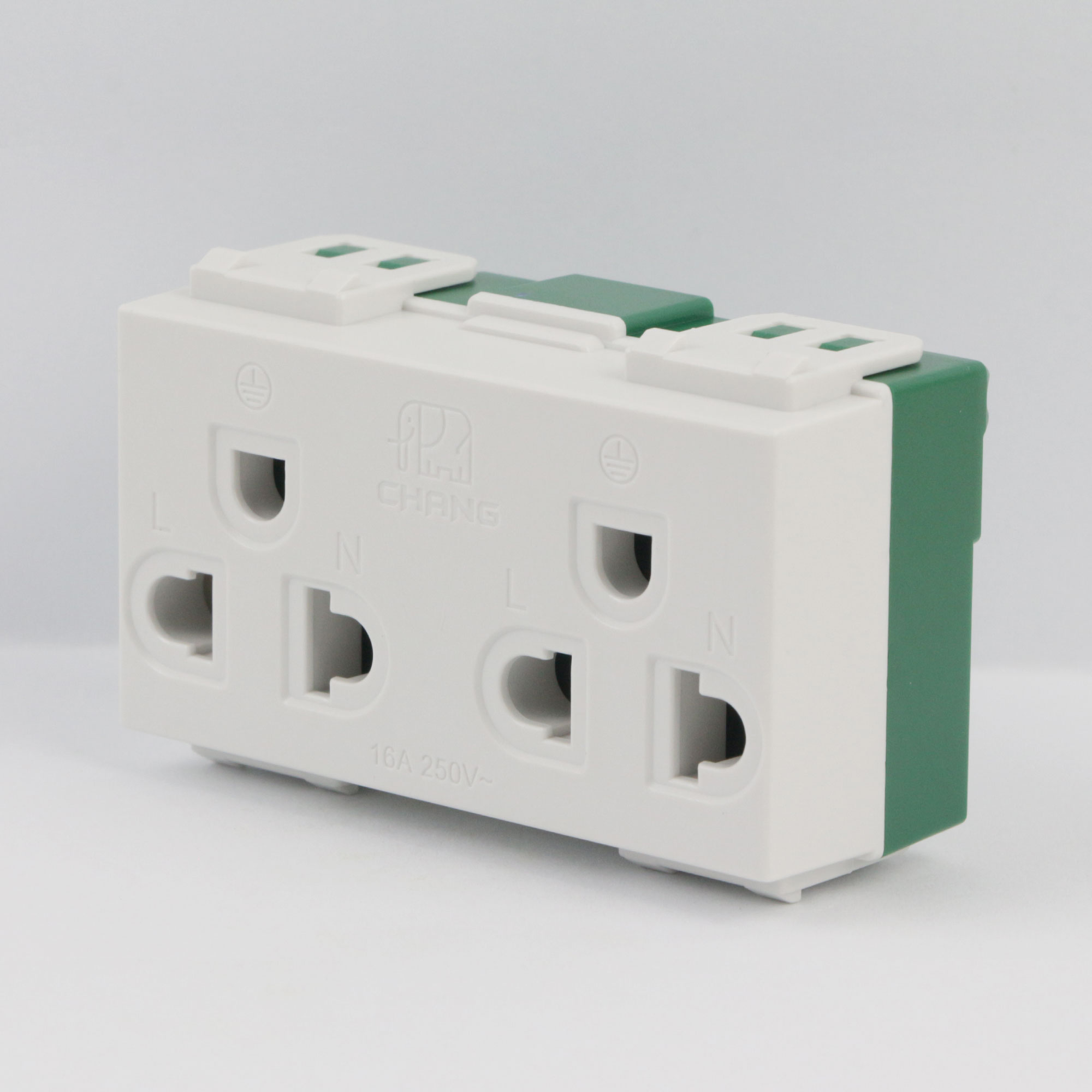 ชื่อสินค้า : ปลั๊กกราวด์คู่ สีขาว Chang WEG | 06662