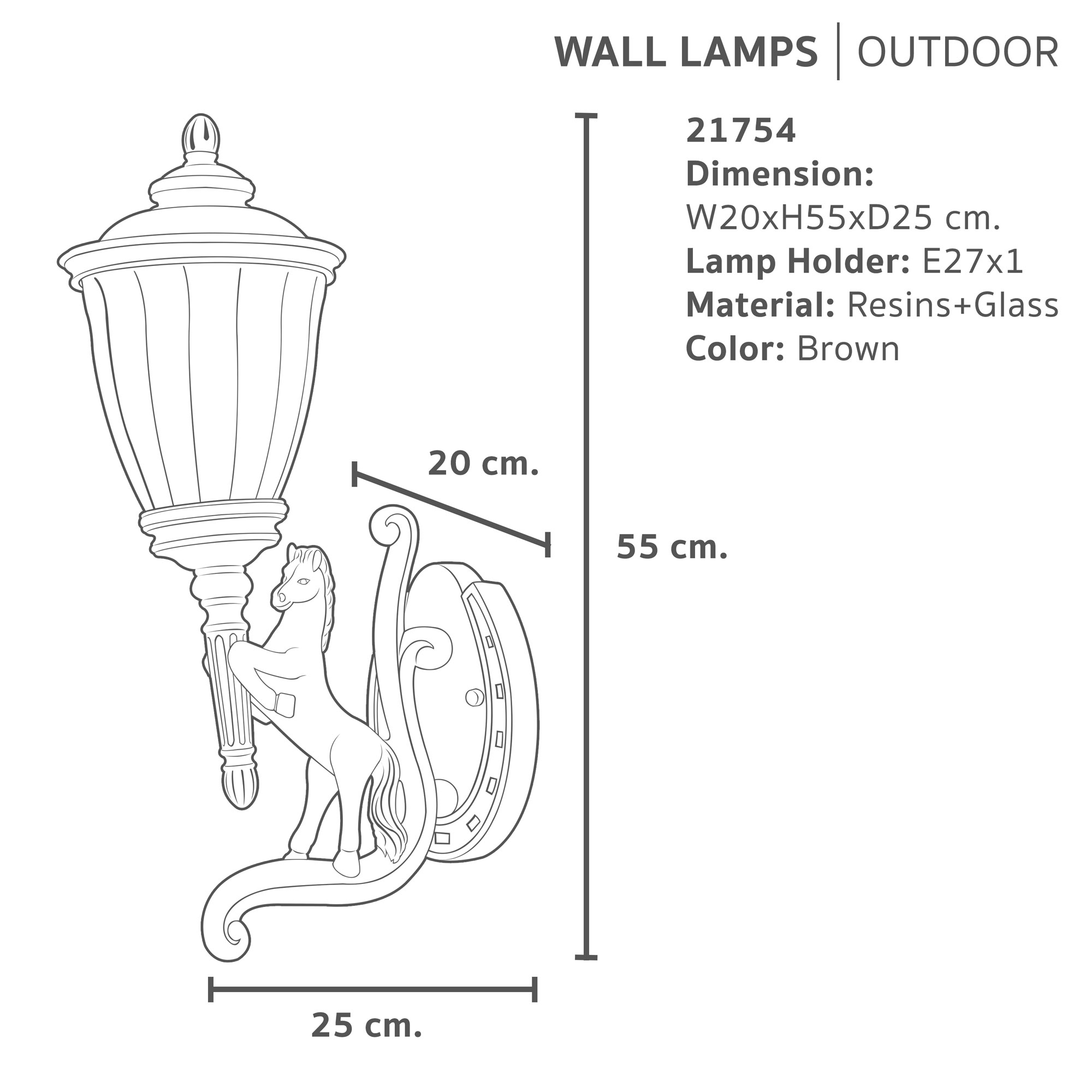 น้ำหนัก 4.5ชื่อสินค้า : Outdoor Wall Lamp | โคมไฟติดผนังภายนอก OW21754-Brown | 1022/001
