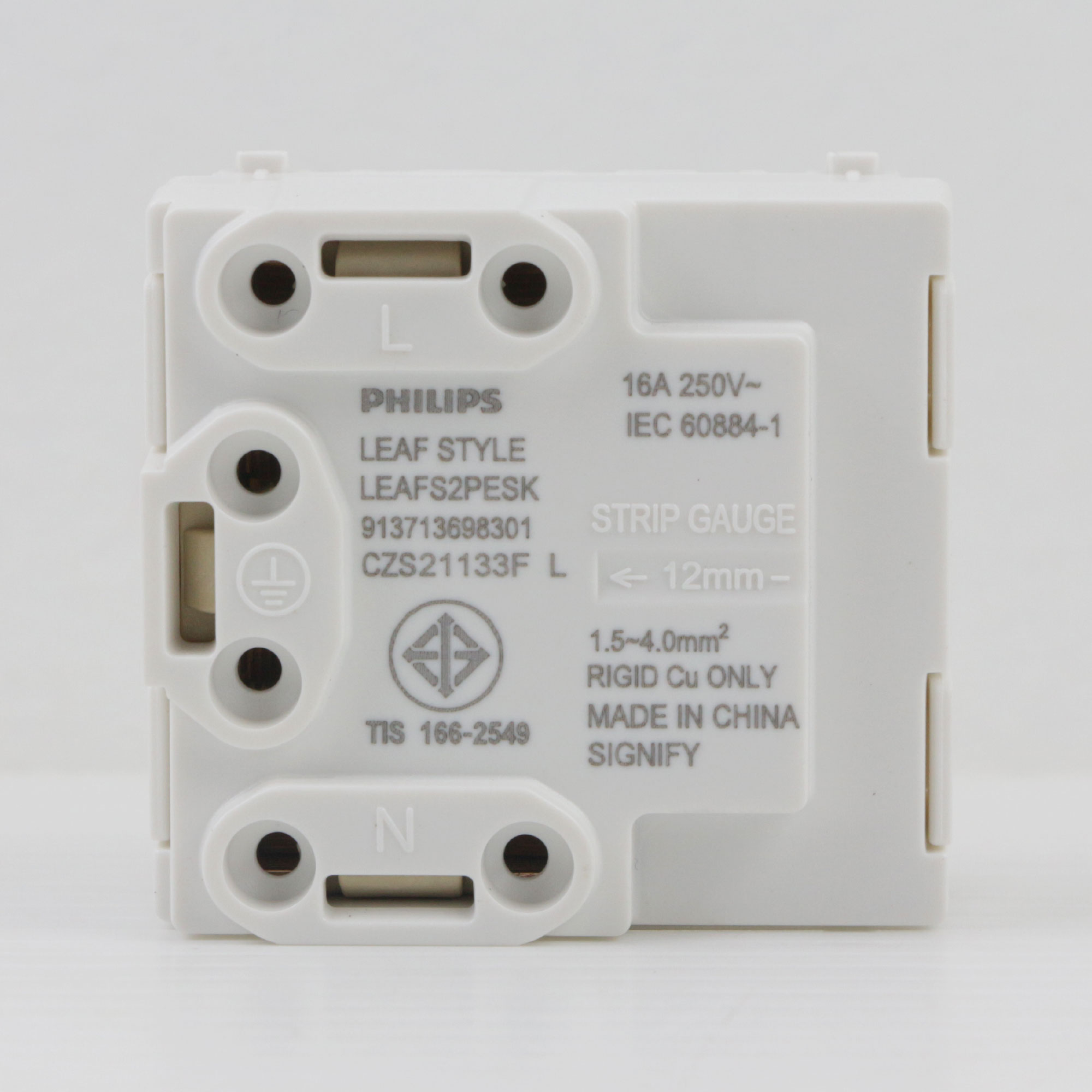 แชทข้อมูลสินค้าปลั๊กกราวด์เดี่ยว มีม่าน สีขาว Philips LeafStyle | 23423