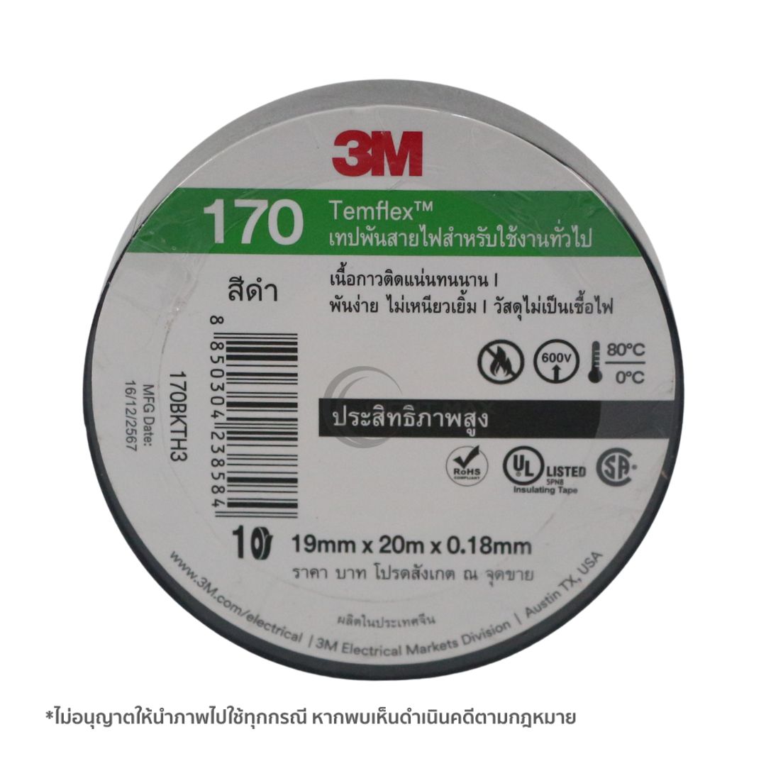 ชื่อสินค้า : เทปพันสาย 3M ภายใน ดำ Temflex