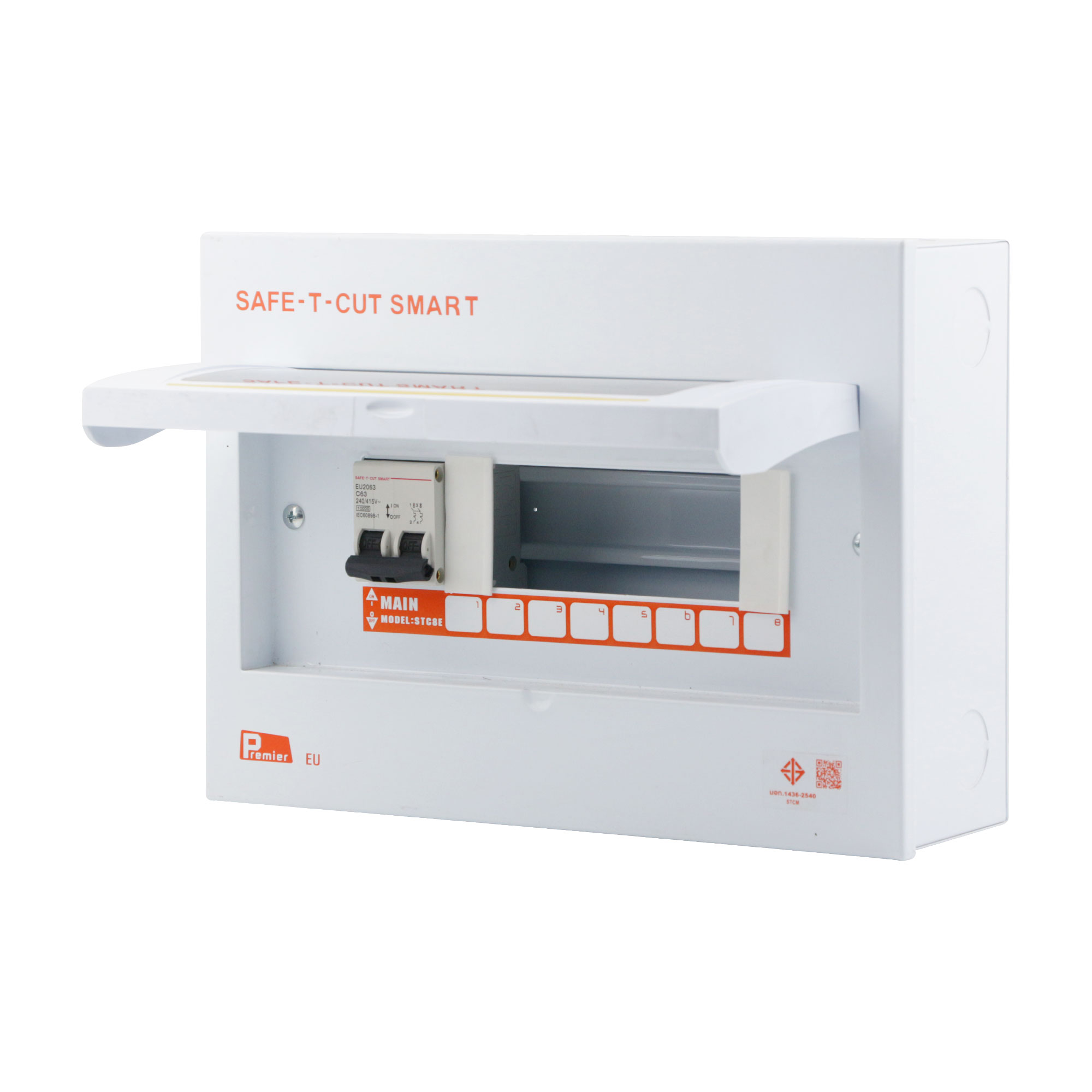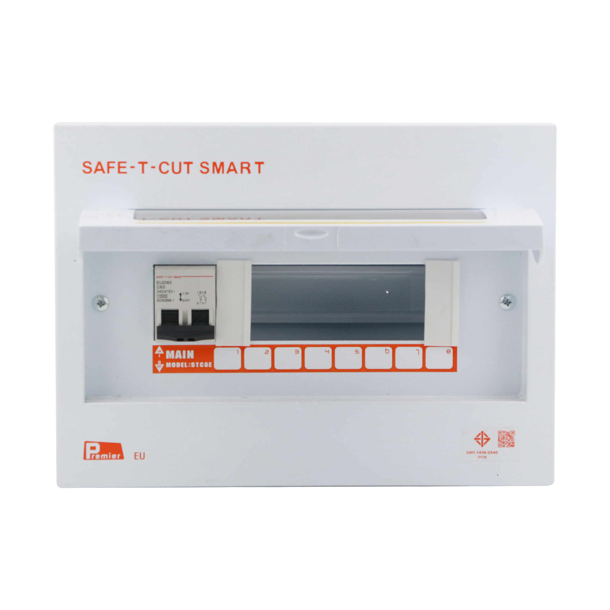 ชื่อสินค้า : ตู้คอนซูมเมอร์ยูนิต 2 เฟส 8 ช่อง 63 แอมป์ พร้อมเมนเบรกเกอร์ SAFE-T-CUT