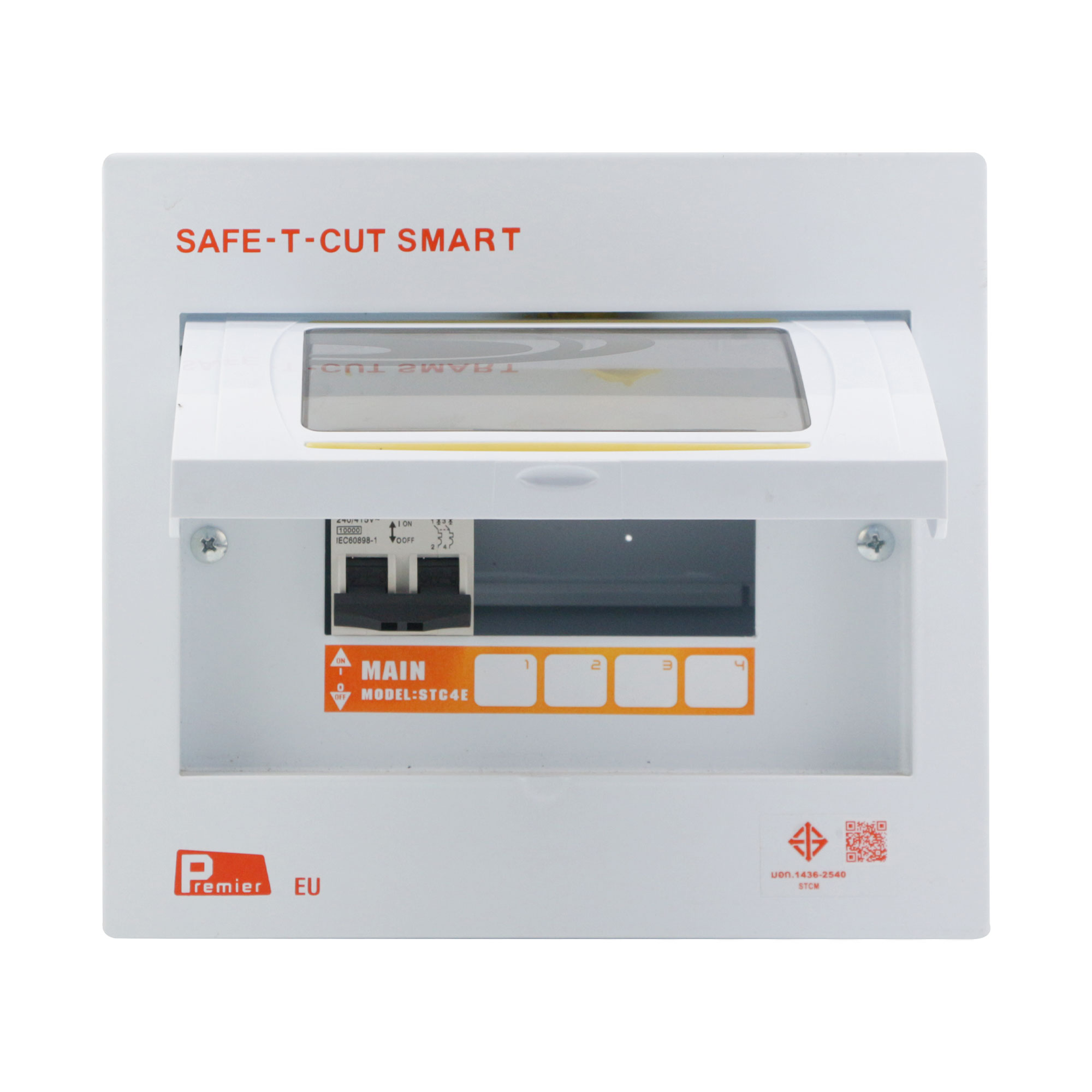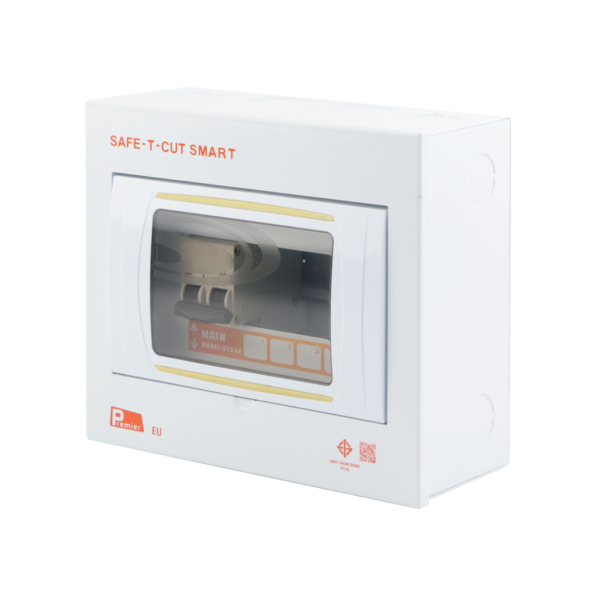 ชื่อสินค้า : ตู้คอนซูมเมอร์ยูนิต 2 เฟส 4 ช่อง 63 แอมป์ พร้อมเมนเบรกเกอร์ SAFE-T-CUT