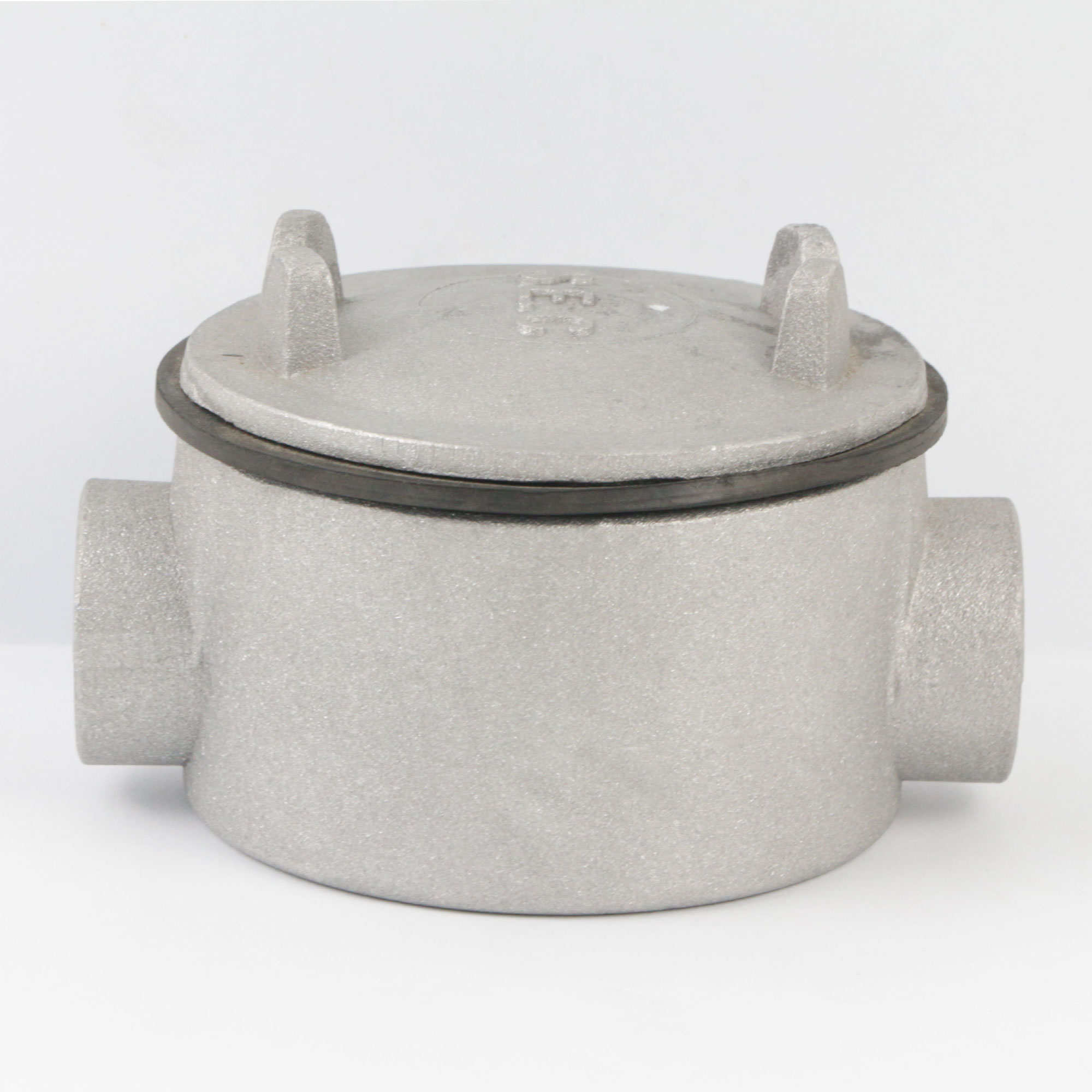 ชื่อสินค้า : กล่องกันน้ำเหล็ก แบบกลม 2 ทาง รู 1 นิ้ว ตรง