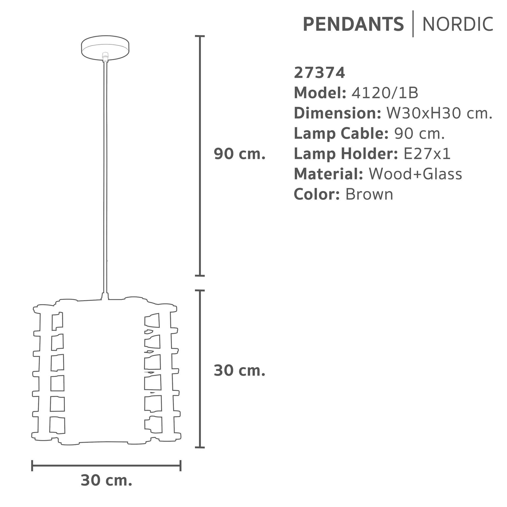 รหัสสินค้า : 27374 ★ โคมไฟห้อย สำหรับติดเพดาน สไตล์ Nordic ★ โคมทำจากไม้สีน้ำตาล ★ ด้านในแก้วทรงกระบอกสีขาว ให้แสงสว่างนุ่มนวล สบายตา ★ ใช้กับขั้วเกลียวมาตรฐาน E27 จำนวน 1 หลอด ★ ราคาโคมไฟไม่รวมหลอดไฟ ข้อมูลจำเพาะ ★ ประเภท: โคมไฟห้อย ★ รูปแบบโคม: นอร์ดิก ★ วัสดุ: ไม้ + แก้ว ★ สี: น้ำตาล ★ หลอด: E27 x 1 ★ สายโคมไฟ: ยาว 90 ซม. ★ ขนาด: กว้าง 30 x สูง 30 x ลึก 30 ซม. ★ น้ำหนัก: 2.5 กก. คำแนะนำ ★ หมั่นตรวจดูสายไฟและขั้วปลั๊กอยู่สม่ำเสมอสวิตช์ ★ อย่าสัมผัสหลอดไฟขณะใช้งาน ★ ห้ามเปลี่ยนหลอดไฟขณะยังเปิดสวิตช์ หรือตัวเปียกชื้น ➽ หมายเหตุ: สีของผลิตภัณฑ์อาจมีความแตกต่างกัน เกิดจากการตั้งค่าการแสดงผลของแต่ละหน้าจอ