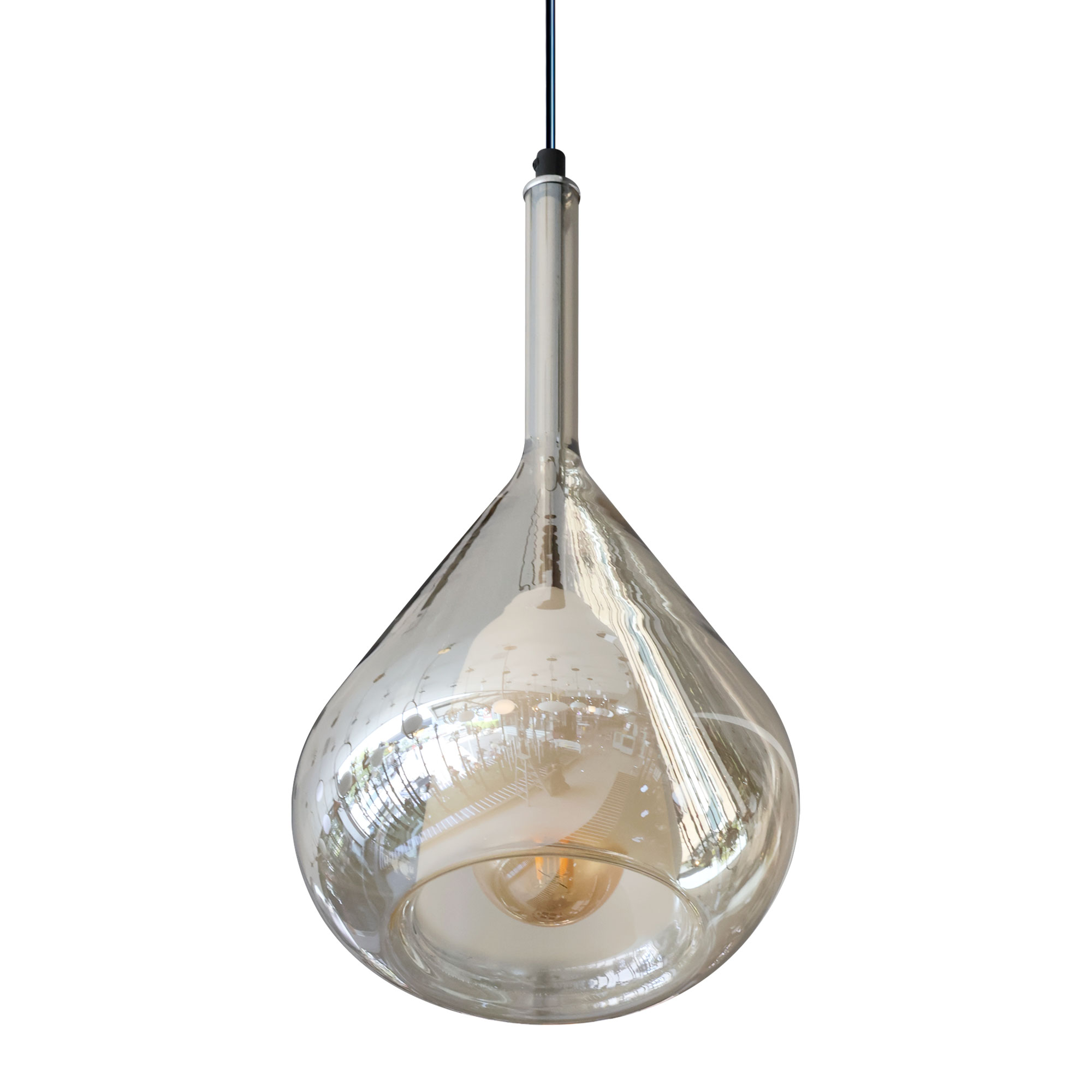 ★โคมทำจากแก้วใสทรงลูกแพร 2ชั้น ขั้วทำจากเหล็ก