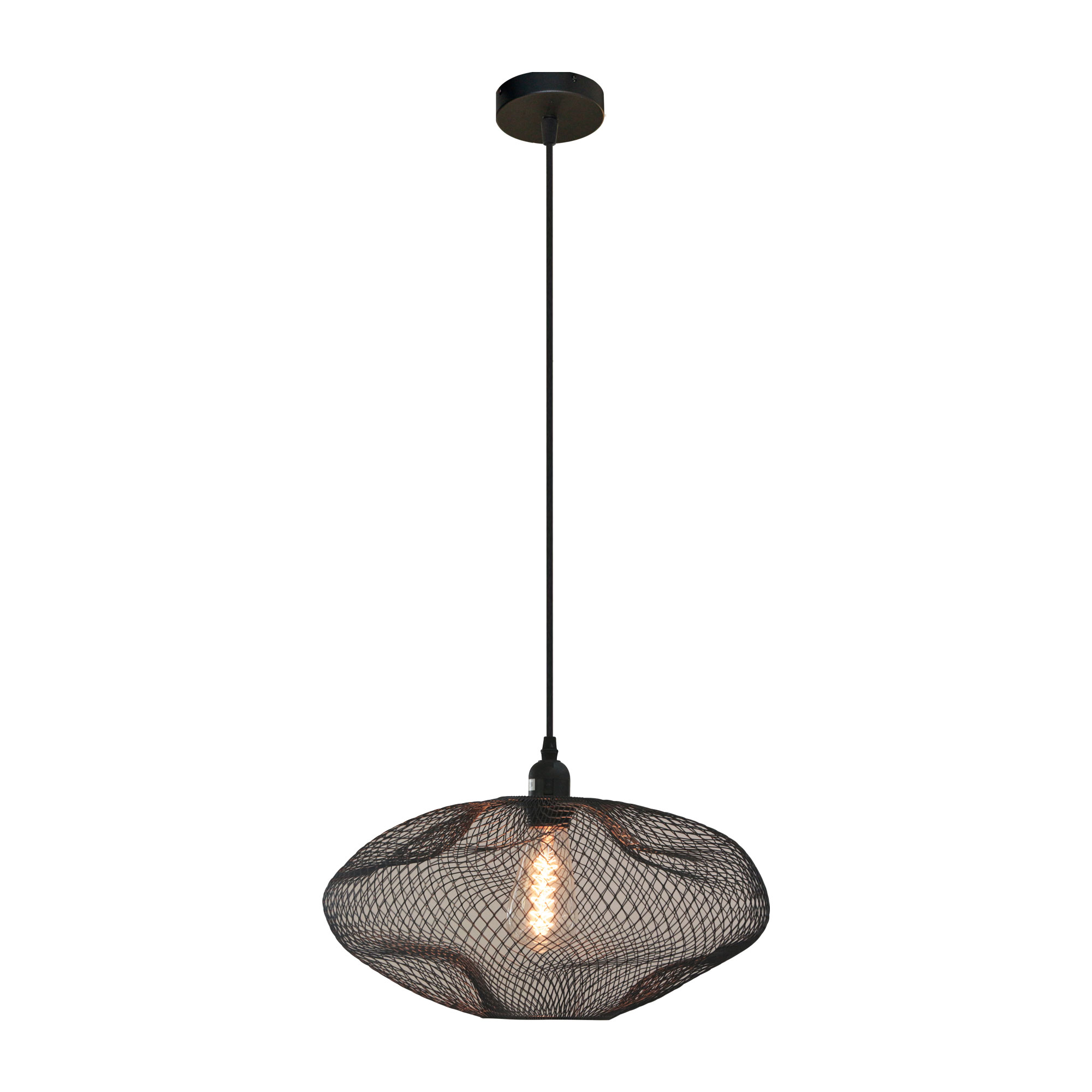 ★โคมทำจากเหล็ก ทรงรี ลายตาข่าย สีดำ