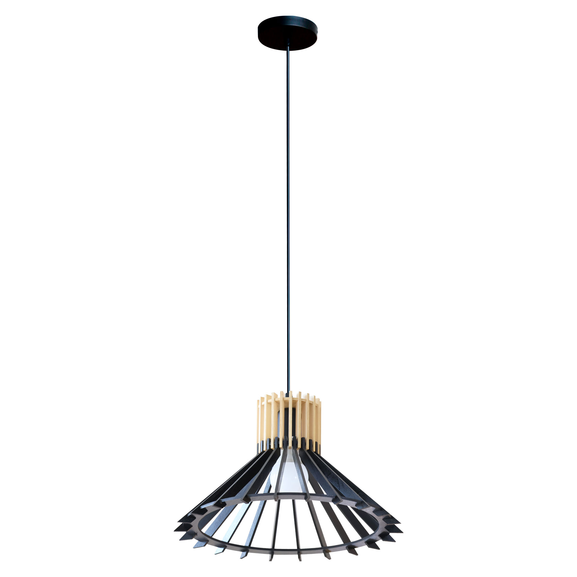 ★โคมทำจากไม้ตะแกรงดำทรงหมวก ขั้วลายไม้
